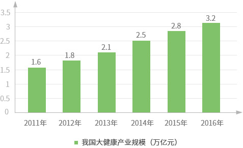 健康产业是世界上增长最快的产业之一,与发达国家相比我国健康产业仍处于初创阶段。在发达国家,比重超过15%,而我国健康产业仅占国民生产总值的4%-5%,发展空间巨大。同时在产业结构方面,发达国家已经形成较全面均衡的产业细分,而我国健康产业细分严重失衡,除医疗及医疗用品外其他细分产业均尚处开发初期,巨大潜力尚待全面发掘。前瞻产业研究院预测,健康产业将以势不可挡的速度加速发展,在2020年将达到10万亿规模,成为推动经济发展的新引擎。
