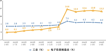 电子信息制造业规模总量大、产业链条长、涉及领域广,是稳定工业经济增长、维护国家政治经济安全的重要领域。近年来,电子信息行业以5G、智能制造、消费电子转型升级为导向,产业链整合和产融合作扎实推进,产业生态体系不断完善,新型增长点加速成长,带动行业规模稳步扩张。从2013年到2023年,我国电子信息制造业连续11年保持工业第一大行业地位。统计显示,2024年上半年电子信息制造业产业发展分别呈现出三大重点态势:①效益稳定增长、②生产快速增长、③区域分化明显。