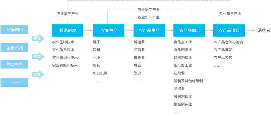 随着科技技术,尤其是移动互联网技术、物联网技术与农业技术的组合推进,农业第二、三产业将继续促进对农业第一产业的领先发展优势,针对农业第二、三产业的投资将继续成为行业投资主流。