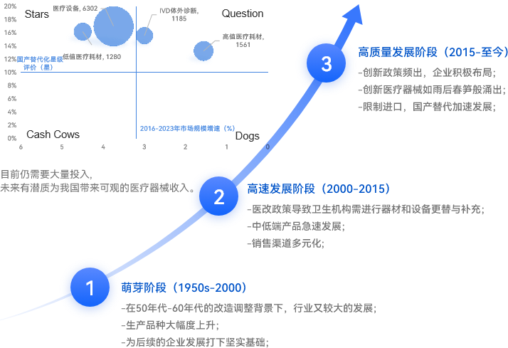 医疗器械产业概念及背景、中国医疗器械政策历程、中国医疗器械发展现状、中国医疗器械竞争格局、中国医疗器械创投情况、中国医疗器械发展痛点、医疗器械产业链、医疗器械+应用场景现状、医疗器械与应用场景融合度分析…
